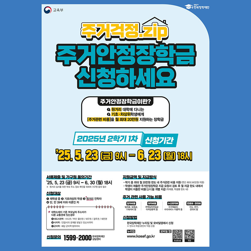 주거안정장학금은 저소득층 대학생의 주거비 부담을 덜어주기 위해 신설된 국가장학금입니다. 2025년 2학기 1차 신청이 5월 23일부터 시작되었으니, 아래 내용을 꼭 확인하고 빠르게 신청하세요!